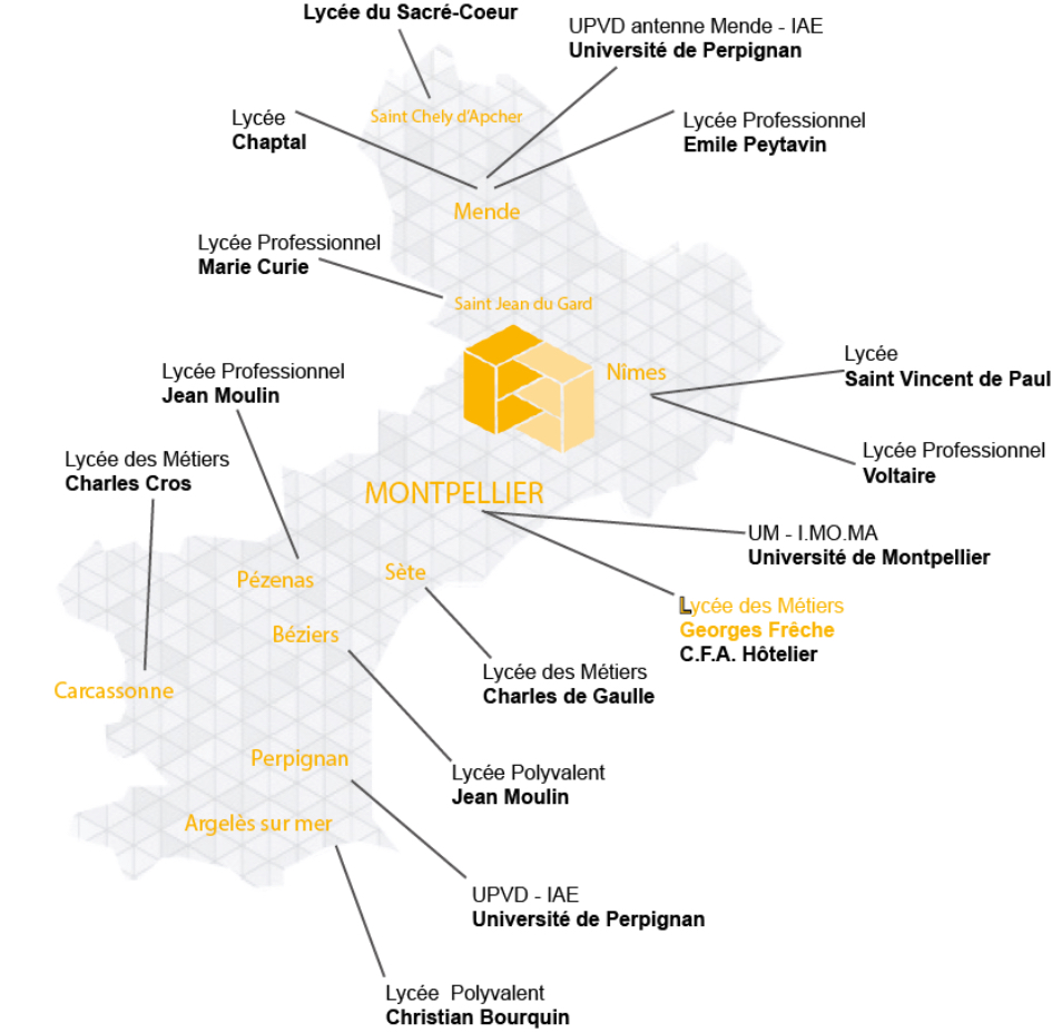 The Campus des Métiers et des Qualifications GASTRONOMIE, HÔTELLERIE et TOURISMES Occitanie is an emblematic reception and training space, and includes public and private training establishments under contract.